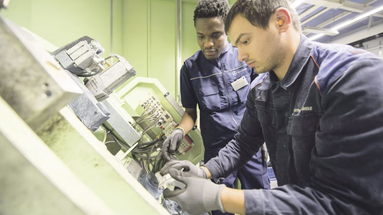 Im Mai haben 18 Flüchtlinge und Asylbewerber ein sogenanntes Brückenpraktikum im Mercedes-Benz Werk Hamburg in Harburg begonnen. Die Teilnehmer wurden vom Jobcenter Hamburg ausgewählt und stammen aus Syrien, Afghanistan, Iran und dem Irak und sind zwischen 22 und 41 Jahre alt. Den praktischen Teil absolvieren die Praktikanten in den Montagebereichen Achsen, Achskomponenten und Lenksäulen sowie in der Logistik und im Presswerk. Alle Praktikanten besuchen täglich einen Deutschkurs. Ziel ist, die Teilnehmer nach dem Brückenpraktikum an Unternehmen, Zeitarbeitsfirmen oder in eine Berufsausbildung zu vermitteln.