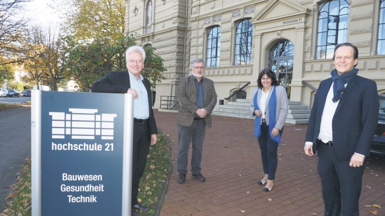 Das sieht auch Marcus Hübner, Geschäftsführer der hs21, so: „Wir sind im Vergleich zwar eine kleine Hochschule, aber dadurch sehr flexibel. So konnten wir uns auch sehr schnell an die Pandemie-Verhältnisse anpassen. Wir haben im März lediglich eine Woche später mit dem Lehrbetrieb begonnen und konnten das Wintersemester sogar pünktlich starten. Der Studienverlauf mit Theorie- und Praxisphase ist also nicht beeinträchtigt. Das ist auch ein Signal an die Unternehmen, die ihren Nachwuchs zu uns schicken: Wir sind verlässliche Partner.“ Rund 1100 Studenten besuchen derzeit die hochschule 21. Insbesondere die Nachfrage im Bauwesen ist ungebrochen hoch. In anderen Bereichen wie im Studienfach Gebäudetechnik/Automation ist dagegen etwas Ungewöhnliches zu beobachten: Dort gibt es mehr interessierte Unternehmen als Studenten, was den Bedarf an gut ausgebildeten Ingenieuren unterstreicht. Zurzeit haben sich 20 junge Leute eingeschrieben, wie Vizepräsident Prof. Dr.-Ing. Thorsten Hermes sagt. „Der Studiengang ist erst im vergangenen Jahr neu gestartet und etabliert sich noch. Insgesamt haben wir