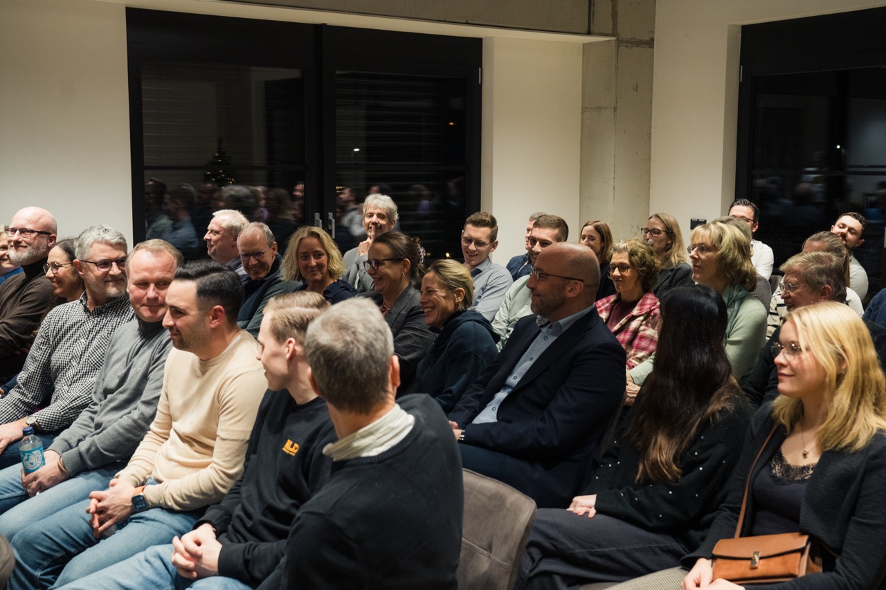 Nach mehr als einer Stunde endete die bunt gemischte Fragerunde. Doch so wirklich Redepause hatte Vanessa Zobel auch danach noch nicht. Beim gemeinsamen Ausklang des Abends mit Getränken und Fingerfood stellte sie sich in kleinerer Runde den – noch immer zahlreich vorhandenen – Fragen der Mitglieder des Gewerbeverbunds.