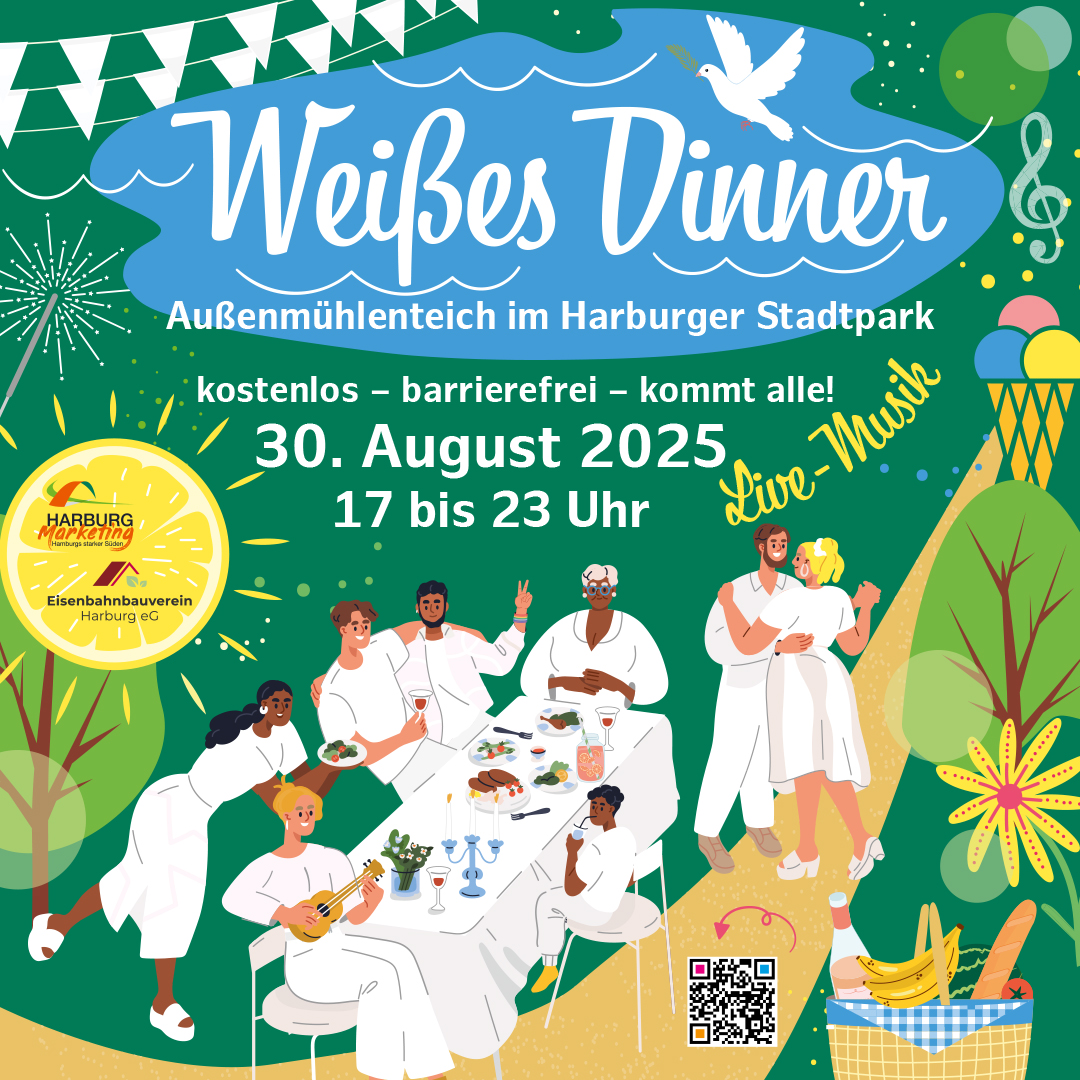 „Das Weiße Dinner zeigt jedes Jahr aufs Neue, wie einfach und schön gelebte Gemeinschaft sein kann. Ein weiß gedeckter Tisch, viele Ideen und Menschen, die miteinander feiern, genießen und Harburg von seiner strahlenden Seite zeigen. Unser besonderer Dank gilt dem Eisenbahnbauverein Harburg eG für die großzügige Unterstützung. Veranstaltungen wie diese sind wichtige Impulse für ein offenes und solidarisches Miteinander. Kostenfrei, barrierefrei und für alle zugänglich im Herzen unseres öffentlichen Raums.“