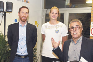Marketingleiter Thorsten Sundermann (links), Spielerin Jessica Oldenburg und Geschäftsführer Michael Schmidt hoffen auf weitere Unterstützung aus der Wirtschaft im Hamburger Süden. Fotos: Wolfgang Becker